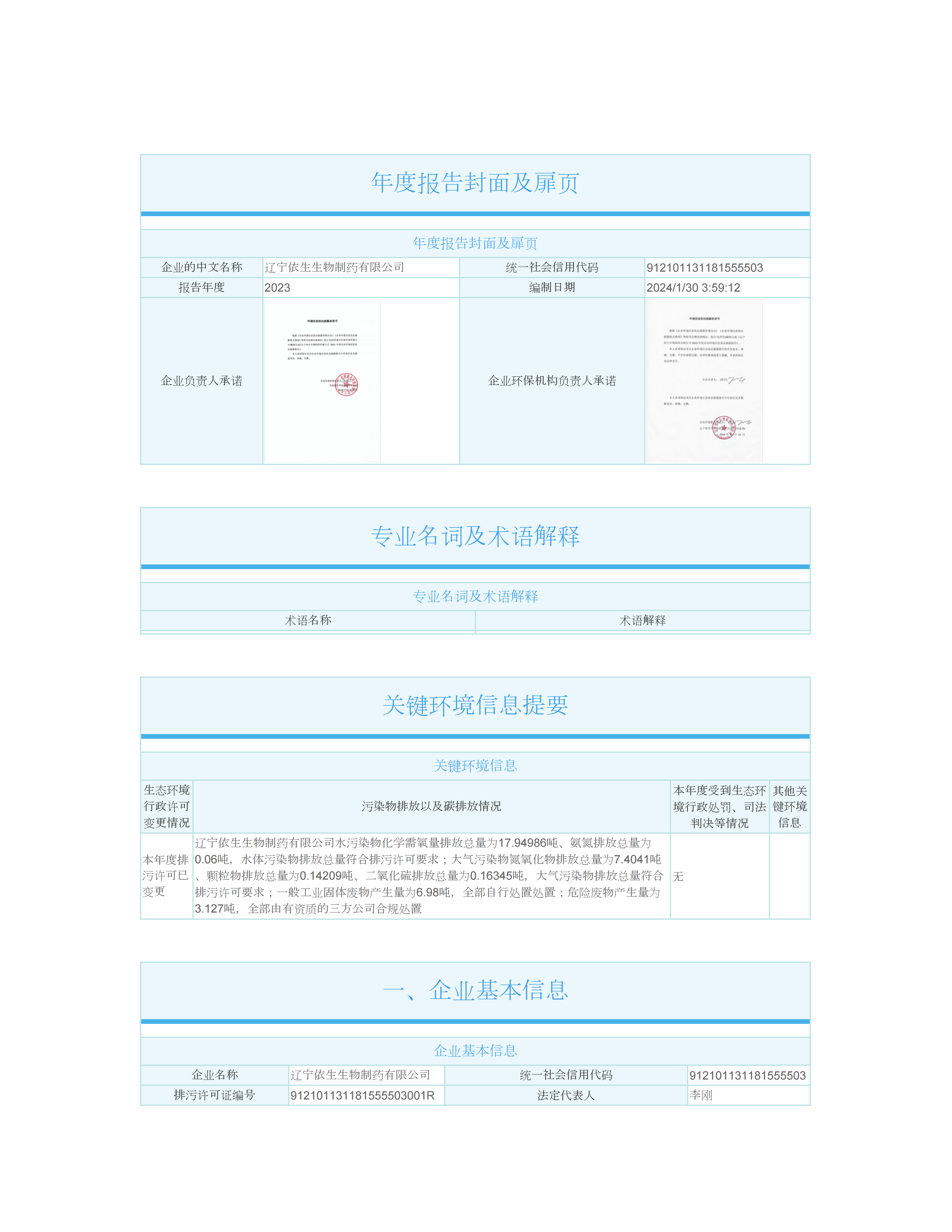 2023年度遼寧依生生物環(huán)境信息依法披露年報