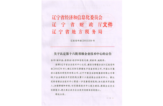 被評(píng)為遼寧省省級(jí)企業(yè)技術(shù)中心。